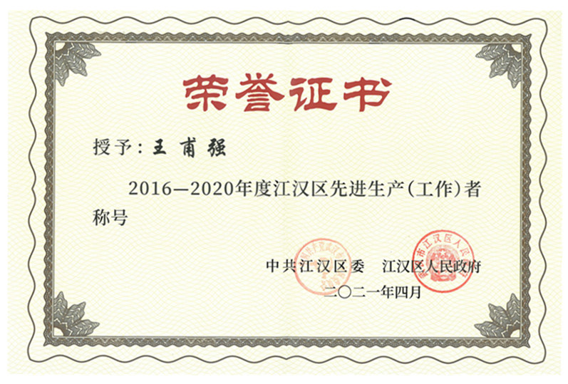 經公司工會推薦,江漢區總工會授予武漢市勘察設計有限公司檢測監測公司總經理王甫強同志“2016-2020年度先進生產(工作)者”榮譽稱號,授予檢測監測公司軌道交通監測項目部“2016-2020年度先進班組”榮譽稱號。