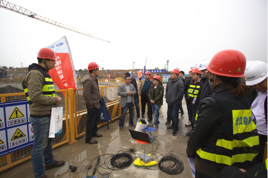 2018年11月19日下午,在公司副總經(jīng)理兼總工程師官善友的帶領(lǐng)下,綜合部、技術(shù)質(zhì)量安全部、檢測監(jiān)測公司、基礎(chǔ)工程公司、設(shè)計(jì)中心、土工試驗(yàn)室等部門技術(shù)骨干,來到北湖污水處理廠深隧泵房項(xiàng)目施工現(xiàn)場,觀摩學(xué)習(xí)了聲納滲流檢測技術(shù),同行還有武漢地鐵集團(tuán)有限公司、鐵四院、中鐵大橋局等同行業(yè)的專家和技術(shù)骨干人員。